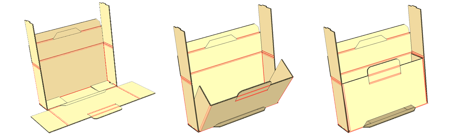 1. Once the detachable sections are off, fold the outer side flaps and small bottom flaps 90 degrees.